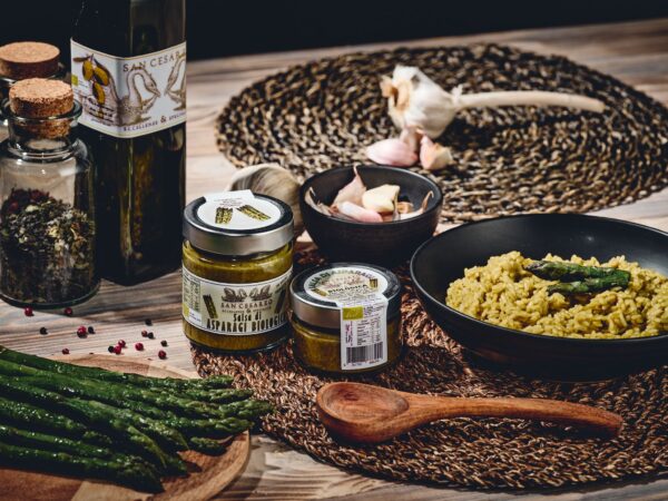 Deliziosissima e delicata salsa di stagione, preparata con asparagi, di nostra produzione, aglio e cipolla cucinati in olio extra vergine d’oliva.